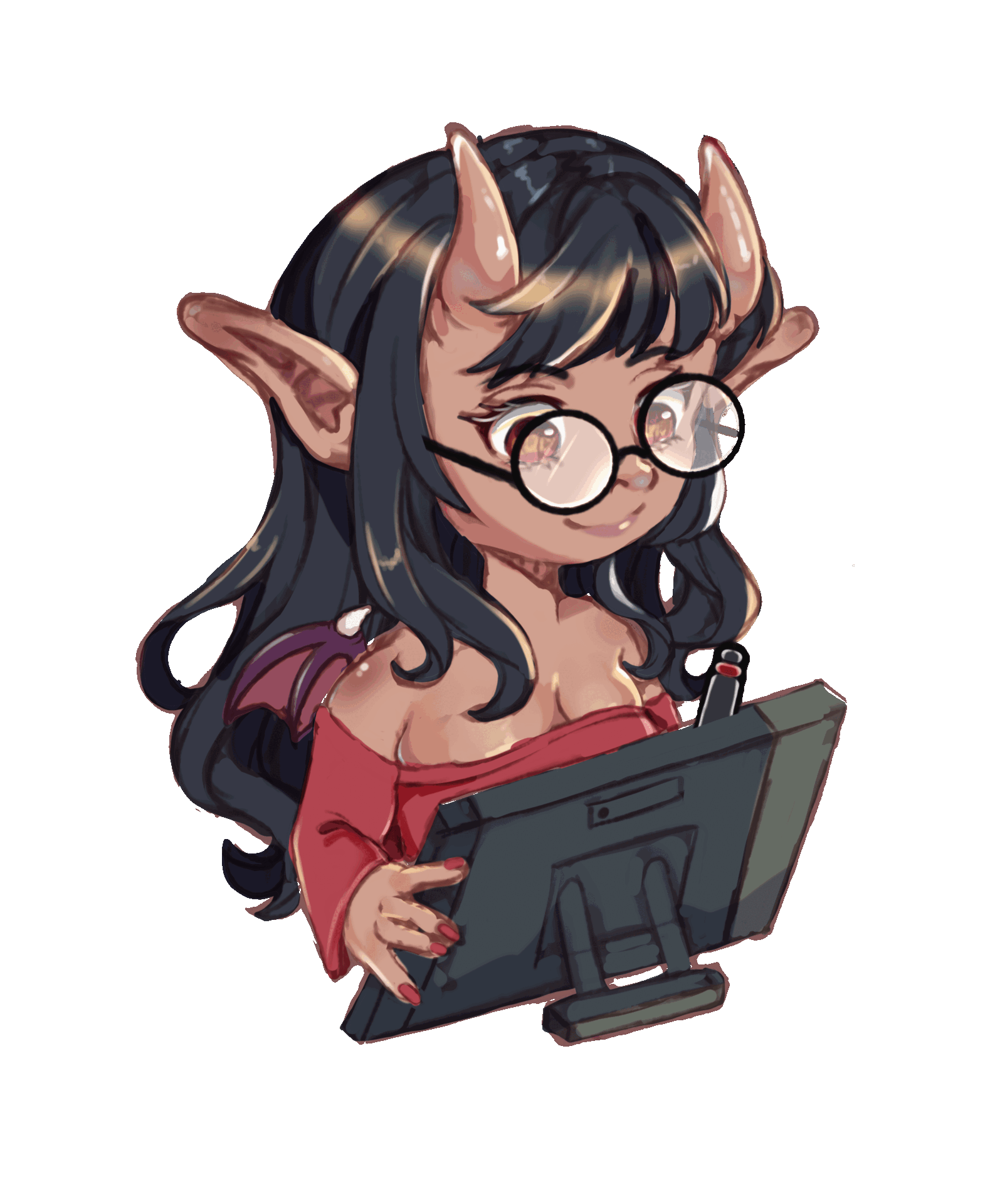 My persona is named Avistemi! She is 19 years old and is a succubus, but is quite shy at her main job. She works part time as a maid cafe to find more clients, but she is quite clumsy! She is responsible for all of your drawings!She is based off my Roblox avatar, and I like collecting art of her!